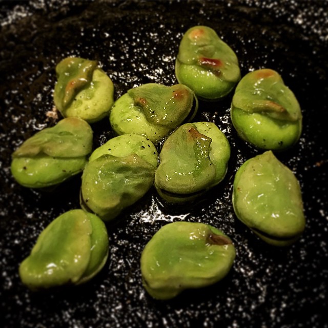 キッチンスタッフはナベさんがじゅうっとそら豆を炒り焼いております!あー、シンプルだけど、これがうまい!皮はエビフライのシッポくらいの感じで!(たべてもいいし、残してもいいし)(お)