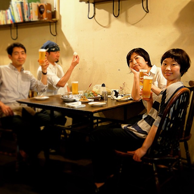 あー、なにげに忙しかったねと定休日明けの火曜の夜、えぇ、当店元スタッフののだみは夫婦揃ってご来店…と、そのあとたまたま新社会人一年生のミチャも合流して、わいわい楽しい夜だね!いい夜にカンパイだ!(笑)(お)