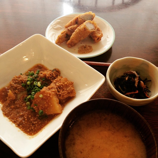 今日のまかないは、かぶとスペアリブのあっさり煮に、おまけをつけてもらいました!風邪を引いた私のために、店長が栄養を考えてくれたんです。春菊と蒸し鶏のからしあえ、卵焼きのはじっこ、チャプチェ。豪華ですね〜。季節の変わり目、皆さんも体調に気をつけてくださいね〜*(^o^)/*(コジ)
