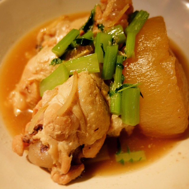 あぁ、鶏手羽元の旨味と出汁と、みずみずしい大根にその旨味がしっかり染み込んで…甘辛〜く煮付けた「大根と手羽元のこっくり煮」!いや。しみじみ旨い、間違いない。(お)