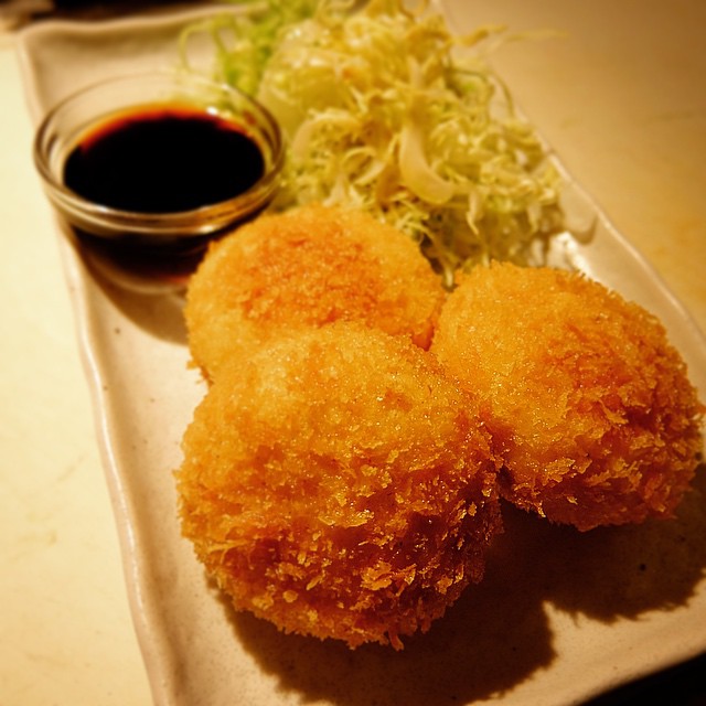 昨夜からお出ししておりますコロッケ!は元スタッフヒデキお家のおいしさ!「じゃがたらコロッケ」!あぁ、あつあつの丸々としたコロッケ!君は抗うことができるか?(いや、抗うコトないけどさ)今夜ももちろん登場です!(お)