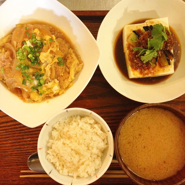 今日のまかないは煮カツとリャンパン豆腐!煮カツって私久々に食べたんですけど、なんかホッとしますね〜。サクサクのカツももちろんいいけど、つゆと卵でふわふわになったカツもいいものです。リャンパン豆腐は、ナス好きパクチー好きの私にはたまらない一品!今日もごちそうさまでした!(コジ)