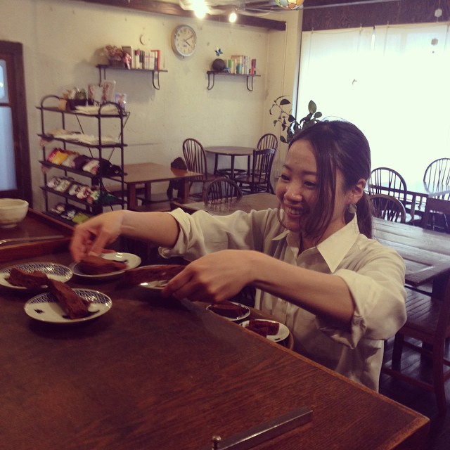 今日のまかないおやつは、こいけ菓子店ブラウニー第二弾です。コジコが分けてくれました。美味しいものを前にしたからですかね、笑顔がはじけてます(^_^)(うめ)