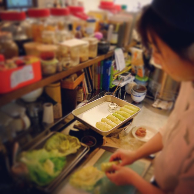 連日人気の「ロールキャベツ」!…って、コンロに大鍋、まるごとキャベツがぐらんぐらん茹でられておりますが、えぇ、店長ミヤザキ曰く、こうして芯のところに切れ目を入れて先に茹でると、キャベツの葉を破くことなく一枚ずつ取れるんだよと、なるほど〜、ワタクシはじめて知りました、勉強になった!と、えぇ、もちろん今夜もあつあつロールキャベツ!お見逃しなく!(お)