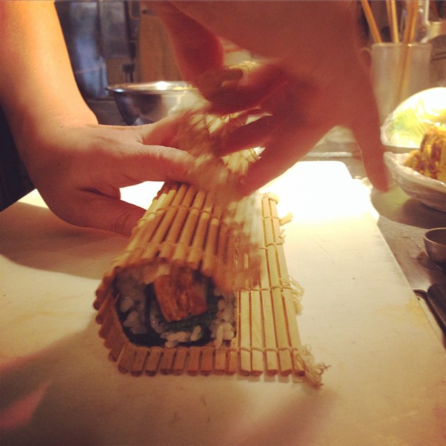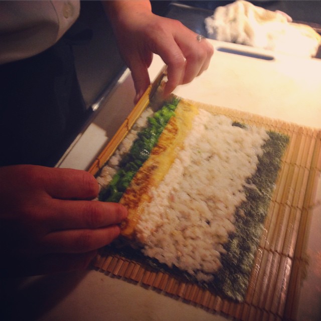 そいやっと巻いて。一本まるまるもよし、ハーフサイズでもお出しできますよ。よかったら、年に一度のリトスタ恵方巻きどうぞ〜限定10本!お持ち帰りご相談ください♩(ぬ)