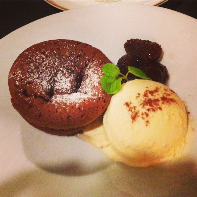 フォンダンショコラ、しっとりとろ〜り、お目見えしてます。自家製いちごシャムとアイスクリームを添えて。珈琲はもちろん赤ワインにも合いそう。。(ぬ)