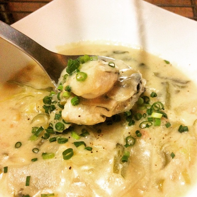今日のまかないはなんと、牡蠣の入ったクリームシチュー!牡蠣のだしが広がって、なんとも優しい味わいです。明日のランチは、同じ牡蠣を使ったあんかけ煮ですよ!雪に負けずあったまりましょう!(コジ)
