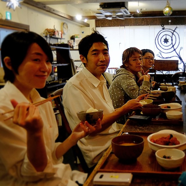 あー、土曜のランチ忙しかったー!!と、ほっとひと息賄いタイム、えぇ、ホールスタッフのウメさんはなんでか店長ミヤザキとサシで勝負!(笑)いや、罰ゲームでも説教でもないですってば!(笑)もちろん仲よくごはん中ですよ。(お)