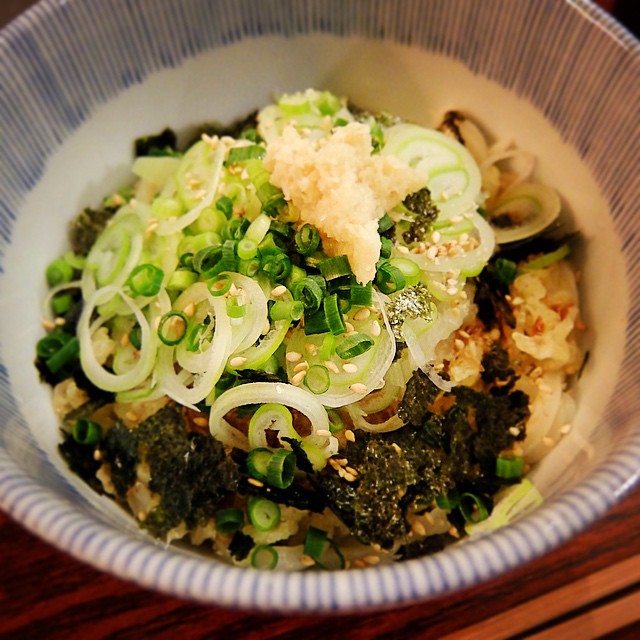 あー、のんびり木曜の夜は、なんでか今夜もワタクシ、夜賄いにうどんをいただいております(笑)。今回は薬味と大根おろしに揚げ玉をわっせとのせて、お醤油でいただくぶっかけうどん…って、中性脂肪の高いワタクシ、夜中に炭水化物はなぁとか思いはしつつ、すっかりゴチでした!(笑)(お)