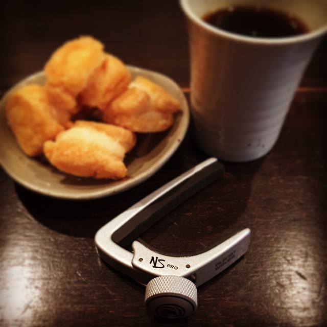 あー、今日はたくさん練習するつもりだったのになぁと、週に一度のまほろばブレイク(苦笑)、今日はカポタスト持参!(笑)(お)