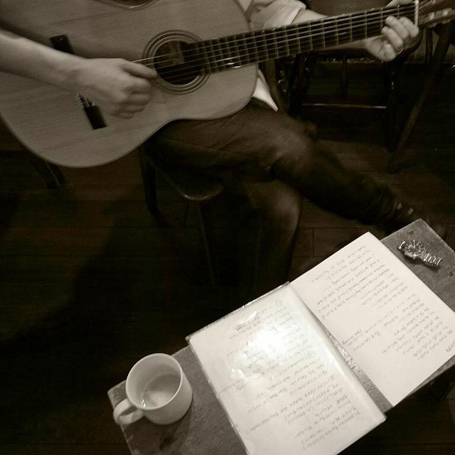 今日の夜は貸切のため、ティータイムは一旦閉店しています。okayanのギターを聴きながらまかない。ちょっと楽しいです。(うめ)