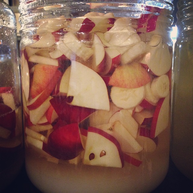 紅玉の季節到来♩ミックスフルーツ酢、来週末には美味しく漬かるかな。(ぬ)