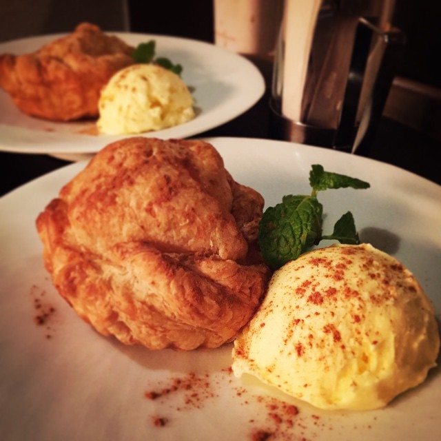 寒い週末ですがあったかくしてお過ごしでしょうか?今年2014年は最後の季節のデザート「アップルパイ(バニラアイス添え)」、年末までロングスパンでお出ししております。えぇ、イマイチパッとしないお天気ではありますが、アップルパイはあつあつでみなさんのご来店お待ちしております。(お)