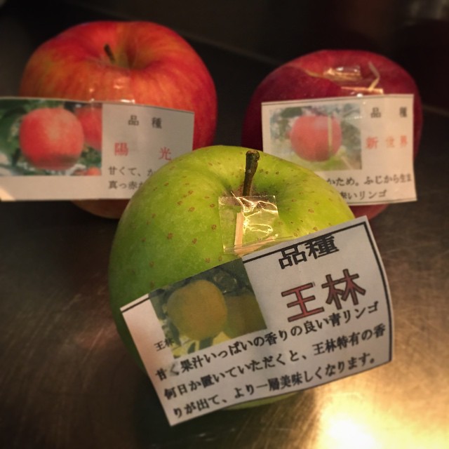 さてさて金曜日、今日はスタッフ的にも入れ替わりの多い1日ですので、えぇ、先日うちのとうちゃんが送ってくれたりんご…三種類をたべ比べてみましょうか!(お)