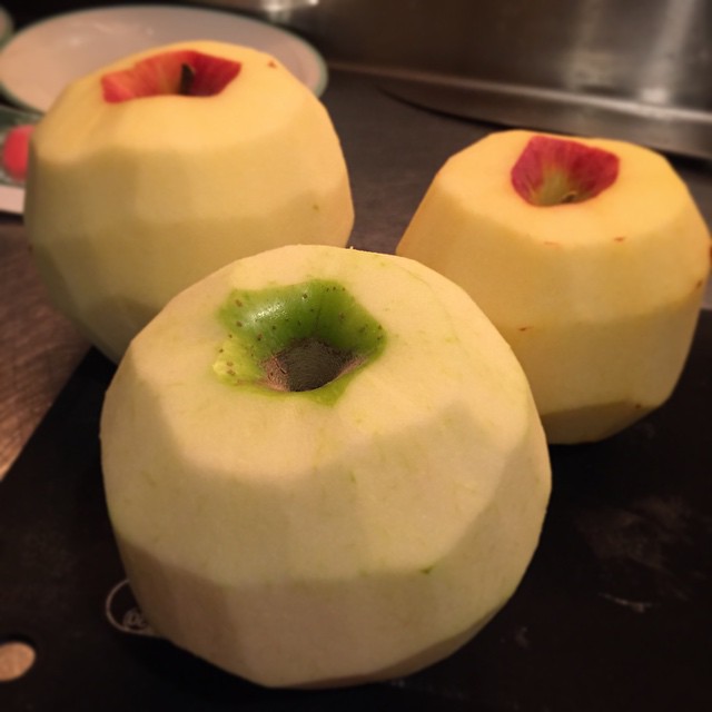 はいはいまるっとするっと剥けました!あとはざくざく8等分して、芯のところを取ったら出来上がり!急げいそげ!(お)
