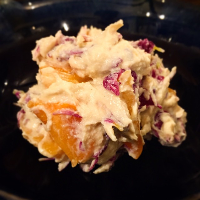 のだみの手には、もってのほかの綺麗な紅紫!柿の実と合わせて、美しきかな…しっとりなめらか白和え衣で和えて召し上がれ〜!(ぬ)