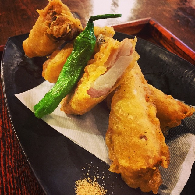 そして恒例?ワタクシの賄いは「れんこんときのこの豚肉巻き揚げ」…いや、昨日に続いて揚げものですけど(苦笑)、だってキッチンスタッフの久保さんが、めきめき揚げものの腕を上げて、おいしいんだもーん!(笑)(お)