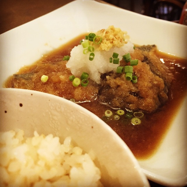 あわ、ワタクシokayanの本日の賄いはランチでお出ししました「サバと揚げ茄子のおろし煮」…いや、そろそろこの歳ですし、えぇ、お魚中心な方がいいかなと(笑)…って、夜はメニューアウトしてますんで、えぇ、あしからずでございます(笑)。(お)