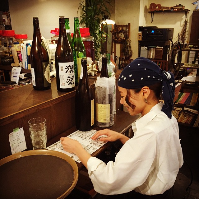 遅番シフトのコジコ、日本酒の在庫チェックに余念なし!(笑)(お)