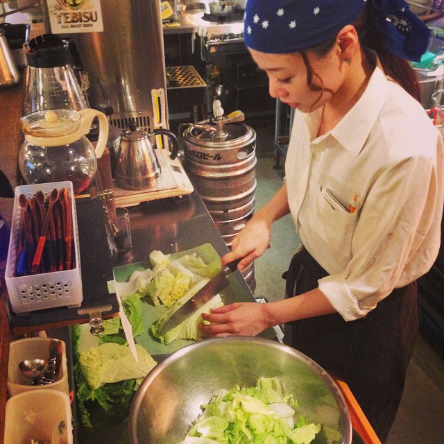 遅番出勤のコジコ、白菜のおしんこ漬け中…地味な仕事ですけど、いつもの仕事、いつものおいしさ。(お)