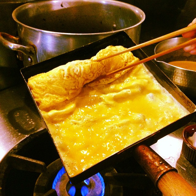 あー、忙しい時は人気アトラクション並みに長らくお待たせすることもございます、オープンから根強い人気の「厚焼き玉子」…今夜はわりにすぐ出ます、ハイ(笑)。(お)