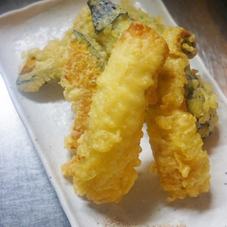 七夕のころは、恒例の「揚げ野菜のっけそうめん」お出ししておりますよ! 鰹と昆布の合わせだしをベースにした麺つゆはあっさり味。カボチャにゴーヤ、茄子にとうもろこしなど夏野菜をたっぷりのっけて、つるりそうめんといただきます。 暑い日もこれならサラサラいけちゃう、夏の日のおすすめです!(麻)