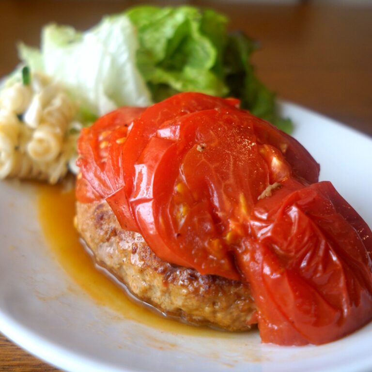 いや実はなにげにのんびりでした木曜日のお昼時(苦笑)…となればもちろん片付け仕込みはさくさくススんで、早番スタッフは仕事上がりはいつもよりもずいぶん早くて、それなら今日はみんないっしょに賄いは夏のスペシャル!「フレッシュトマトのハンバーグ」!(笑) ワタクシも便乗していただきましたけど、えぇ、これですコレです!夏の本命ハンバーグ!暑ければ暑いほどおいしいかもよ!(笑)ぜひッ!(お)