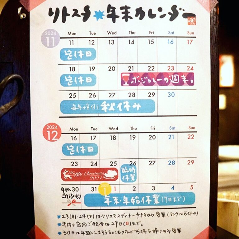 お待たせしました!今年のリトスタ・クリスマスディナーの日程とメニューをおしらせします!