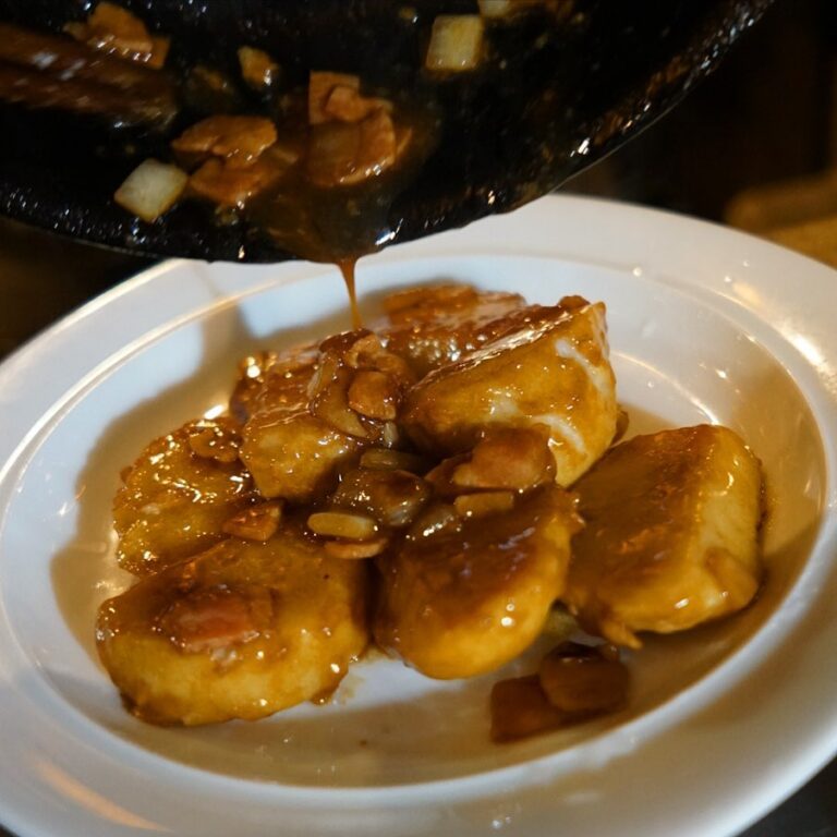 さてとおいしいけれどなかなかみなさん手が出にくい?のが「里芋とベーコンのバルサミコ炒め」!一度蒸した里芋は和風の食材って印象ですけど、そこにベーコンをあわせたら、さらにバルサミコ酢でじゃじゃっと炒めて…これが実に旨いんだよなぁと試して損はないですよ!(お)