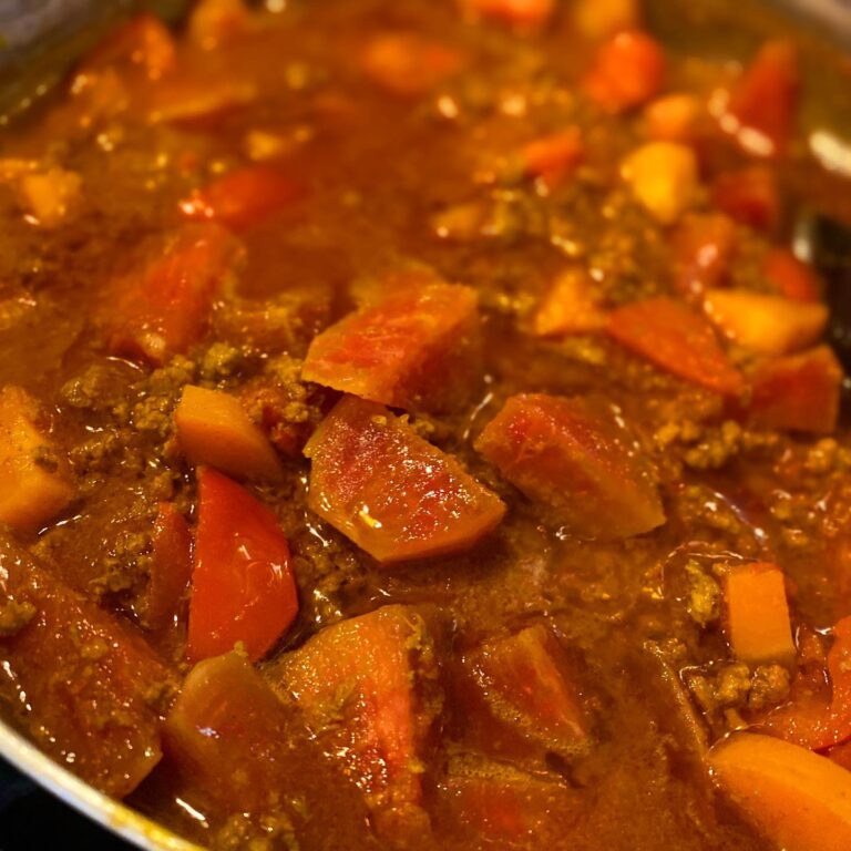 本日夜のお通しは、高知の森田農園さんから来ました紅芯大根を使ったスパイス煮込み!牛挽肉とパプリカ、にんじんをアクセントにほんのりスパイス風味のまろやか煮込みでございます。(麻)
