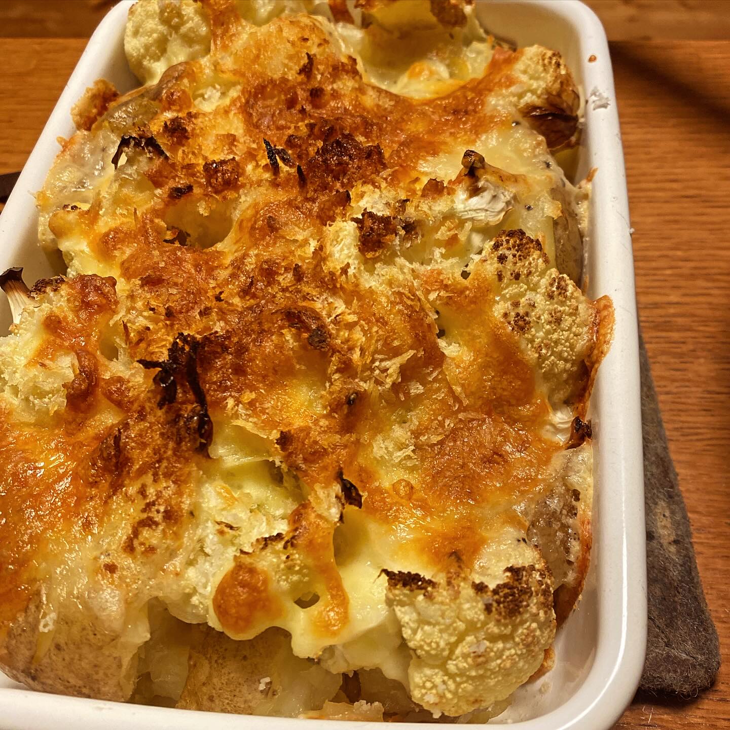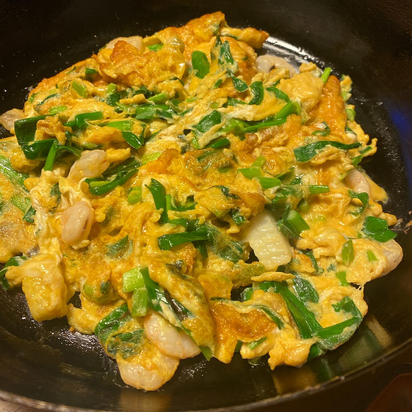 シーフードミックスニラ玉。にら玉は何で作っても美味しい。年末に大家さんが売れ残りをくれたカリフラワーで、ジャガイモとカリフラワーのチーズ焼き。あさばかれいとごぼうの煮付け。お店の余り物、イカの台湾風香味ソース。和洋台湾折衷という感じか、日本酒ならなんでも合わないことはない!
