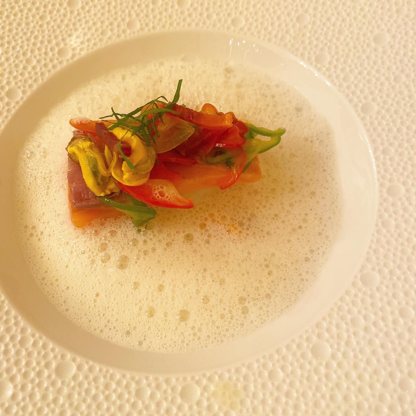 ワインのペアリングコースで、新しい発見も美味しさもあるコースに。前菜からデザートまで、完璧に美味しい、大満足…いつも期待を裏切らない、もっと通わねばと行くたびに思うお店。