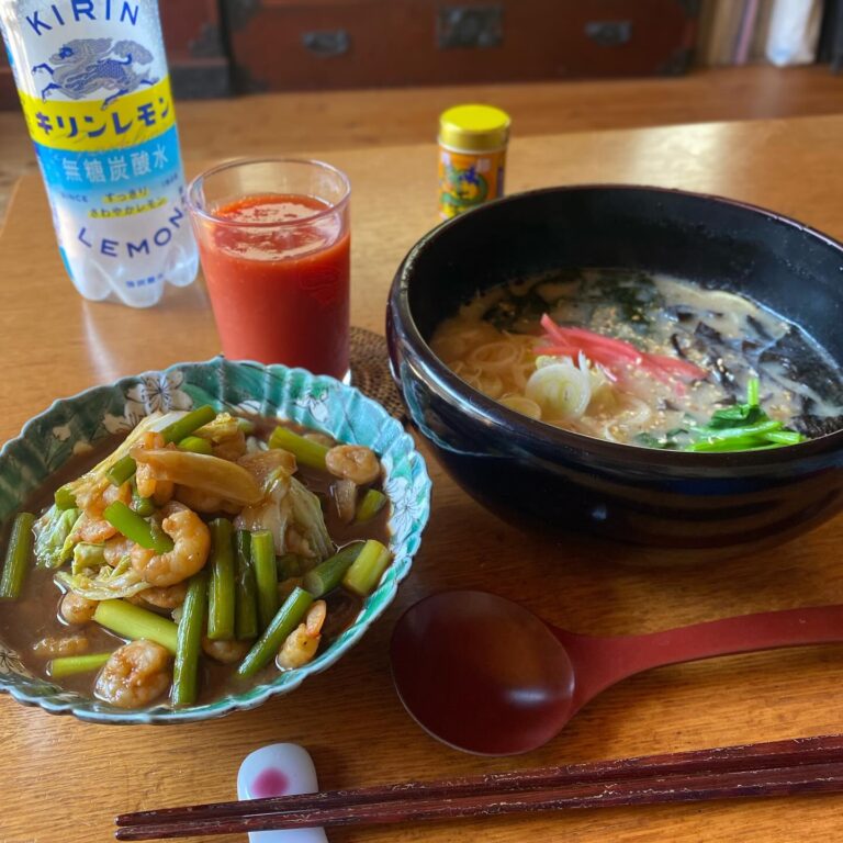 あれだけ中華を食べたのに、ドキュメント72時間を見た影響が…okayanが豚骨ラーメン作る!というので、ワタクシは台湾風「キャベツとニンニクの芽とエビの豆豉炒め」作りましたよ。 しかも夜は中華街で配送手配した肉まんなど届く予定…また中華食べちゃうだろうな。