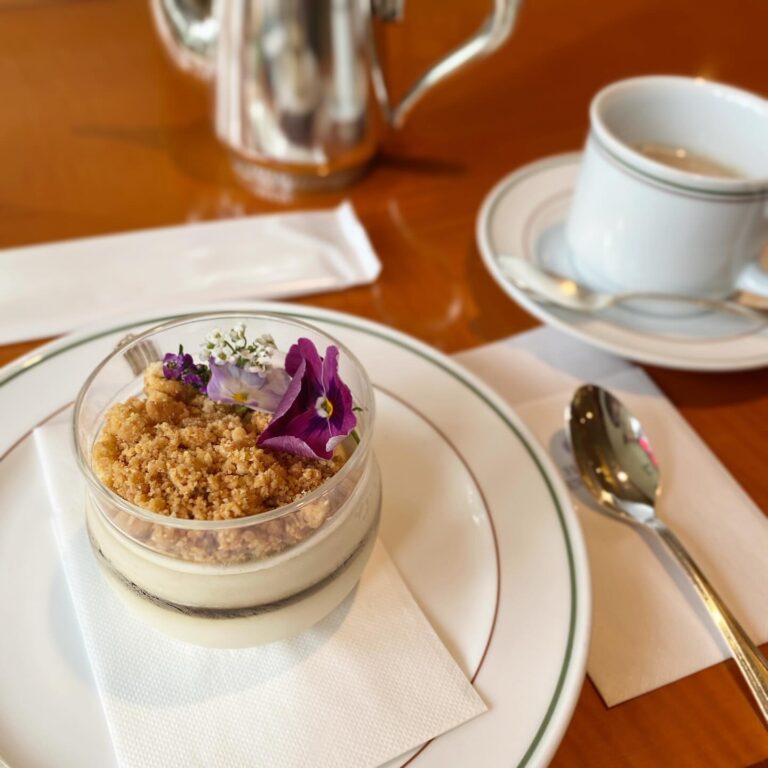 朝寝坊して朝風呂にはいるツレアイokayanを部屋に残して、ひとり朝活…ニューグランドのカフェで、きなこと黒糖のムースと、カフェオレ。ポットサーブが嬉しい。そしてムースはめちゃうま。