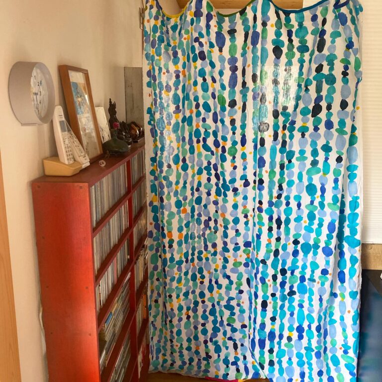 昨日、うつわどころくるみさんのDoucatty展で手に入れた「宝石」…! とりあえずリビングとキッチンの間のカーテンとして。 寝室のほうが長さ的に良いかな、と思いつつ、今シーズンはとりあえず夏らしくこの場所がお似合いかな。良いものは飽きずにずっと愛でられる。