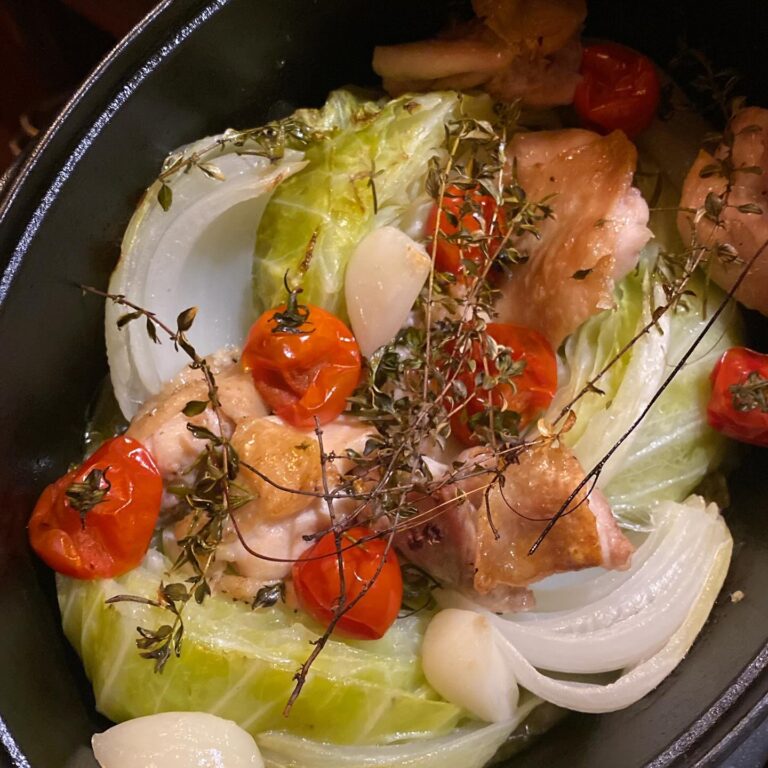 21周年のお祝いに色々お酒をいただき、お店でスタッフと飲んだり家で飲んだり。基本的にお店だとナベさんとヤスくん、クロコくらいしかまともに飲める人がいないので、ほとんど我々夫妻が頂くことになる…ふっふっふ。 昨夜は大学生の頃から来てくれている、今は某私立中学校の学年主任の先生まで務められているOセンセにいただいた、ココ・ファームワイナリーの「風のエチュード」と「風のルージュ」で晩酌。ココ・ファームワイナリーは数年前にOセンセにいただいて知ったワイナリー、センセの地元ということで推しなのだそう…そしてワタシも大好きになったワイナリー。一度まとめて色々取り寄せたいと企んでいる。 肴はダッチオーブンで鶏肉とキャベツなど野菜と、グルメなお客さんにいただいた新にんにくとプランターからとってきたタイムを焼いただけのもの。そしてラムの肩ロースとアスパラをスパイスソテーに。ダッチオーブンをもっと上手く使いこなせると良いんだけど。