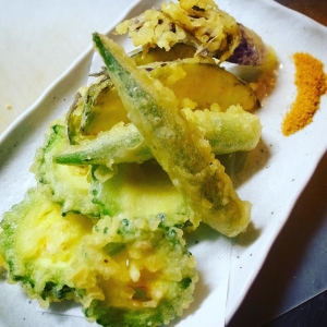 今日のまかないは「ゴーヤとオクラの豚巻き揚げ」です。 前回は売り切れで食べれなかったので今日は食べれて大満足。炒めたり生ではよく食べますが揚げたのは初めて。ゴーヤの苦みと豚肉の脂がよく合います。今度、家でも作ってみようと思います。(い)