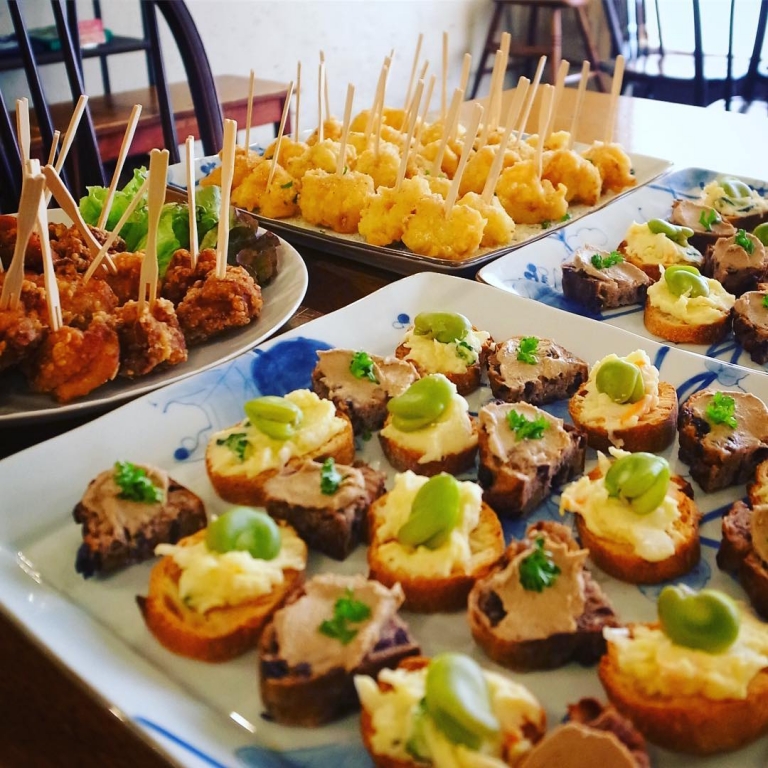 single さてと半袖が気持ちのいい5月の土曜日!と、午後はビル地下はヒロヤショップのワインセラー、若旦那のタカヒロさん主催の音楽とワインの集いに…片手でつまめるオードブルをご用意!カナッペにチーズフリット、鶏のから揚げにパナードと盛りだくさん!楽しくおいしい会になりますように!(お)