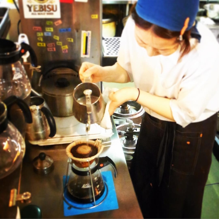 single 先日来コーヒー修行に励んでおりました新スタッフの井上さん!いよいよ本日コーヒーデビュー!と開店前に五人前淹れてもらってます!(お)