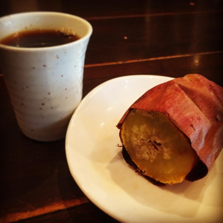 single さてと久しぶりにまほろばブレイクもアップしますねと、今日のお茶漬けはシンプルに焼き芋!いや、これがコーヒーによく合うんだよとまほろばさん。ワタクシ的にはこの冬初焼き芋でごちそうさまです!(お)