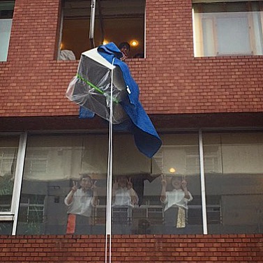single いや現在新規開店工事中の4階にソファをエイヤエイヤと搬入…って、3階のひさし部分はなんとか越えたけど、さすがに引き込むことができず…残念ながらこのあと断念されましたが、いや、とにもかくにもご苦労様でした!(お)